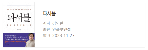 여러 책을 읽었지만 그중 "파서블"의 책이 마음에 와닿았다.