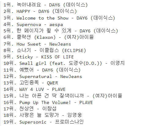 code = requests.get("https://www.melon.com/chart/index.htm", headers={"User-Agent":"Mozilla/5.0"})