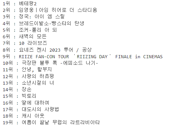 저번에 음원 차트를 실시하고 이번에는 무비 차트 수집이다.