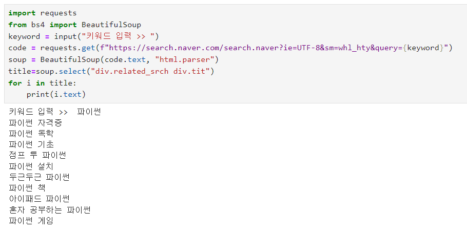 code = requests.get(f"https://search.naver.com/search.naver?ie=UTF-8&sm=whl_hty&query={keyword}")